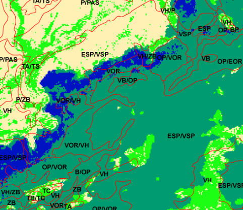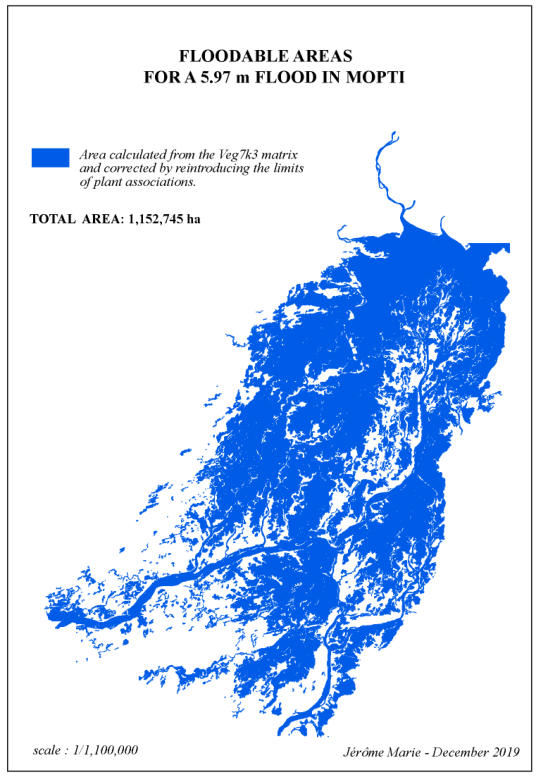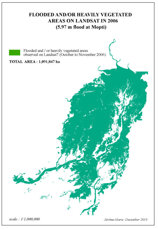 the flood is already largely declining in south of the Delta while the north is not yet completely flooded and / or vegetated.