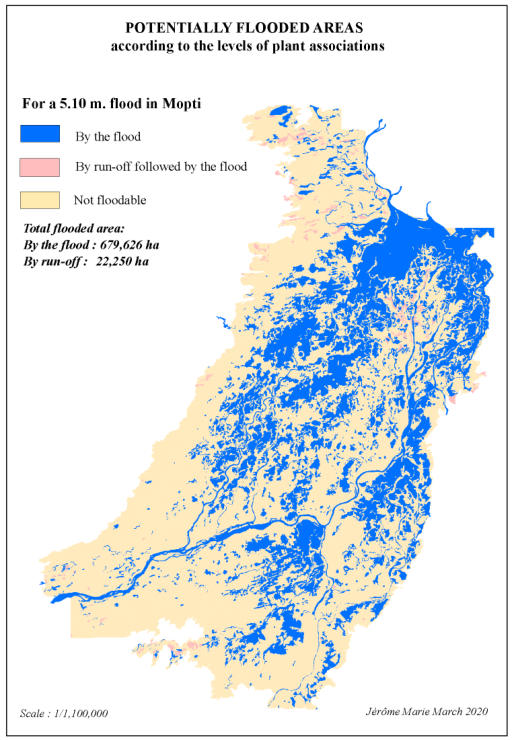 in Mopti as the maximum height of an annual flood, the lowest recorded value was 440 cm in 1984