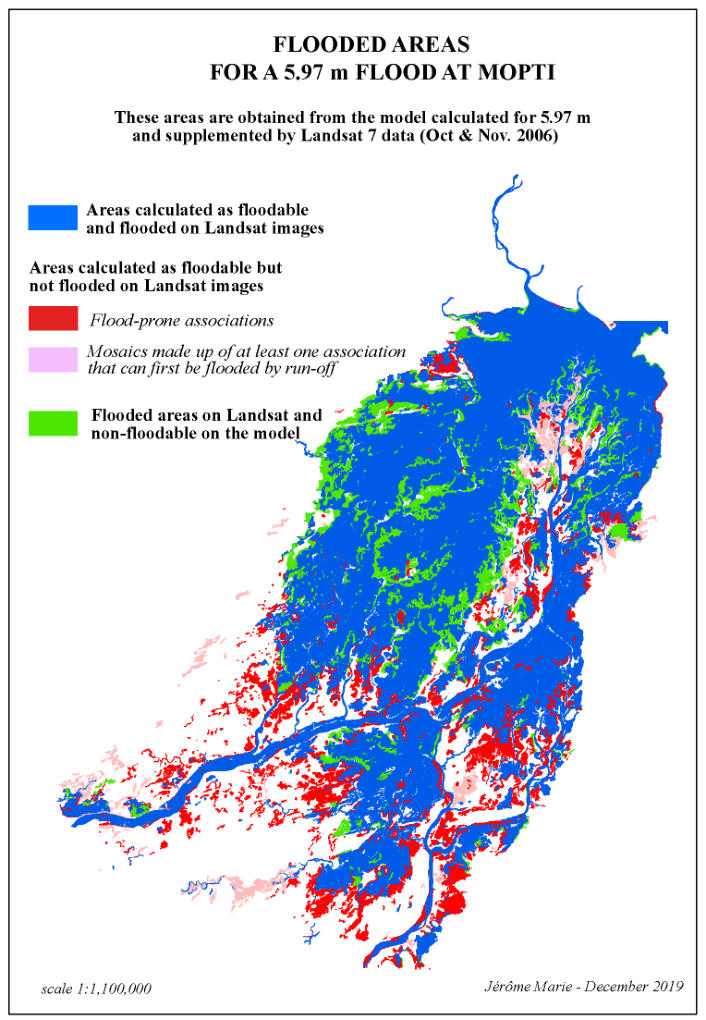 the flood is already largely declining in south of the Delta while the north is not yet completely flooded and / or vegetated.